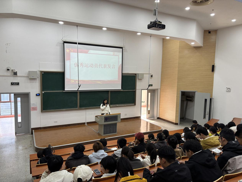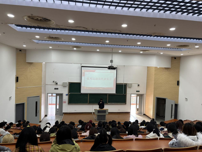 颁奖仪式上,陈倩倩和徐窑窑为在本次运动会中取得优异成绩的运动员颁发荣誉证书。仪式结束后,优秀运动员代表吴彦吉和吉茹涵同学先后发言。他们结合自身训练与参赛经历,分享了对于体育运动的热爱、对于挑战自我的坚持以及对于团队协作的深刻理解,让在场师生真切感受到体育在磨砺意志、健全人格、凝聚力量方面的独特价值。