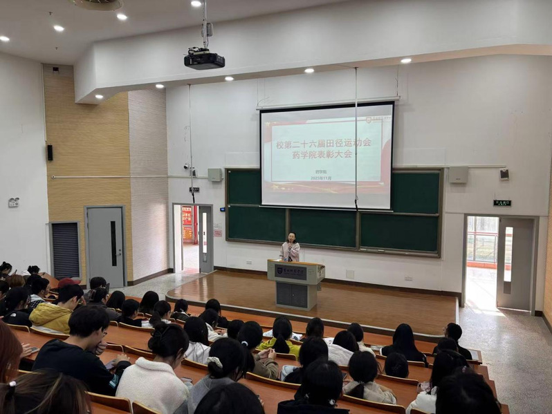 为弘扬体育精神、表彰先进典型,11月12日,药学院召开2025年校第二十六届田径运动会表彰大会。学院党总支副书记陈倩倩、学工办主任徐窑窑出席大会,全体师生运动员、学生干部代表共同参会。大会由学院团委副书记黄金娜主持。