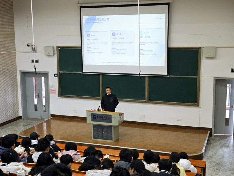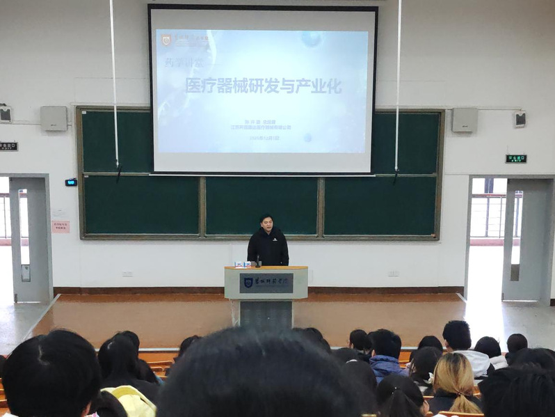 12月3日,药学院邀请江苏开源康达医疗器械有限公司总经理孙开源作专题学术讲座。活动由学院党委副书记、院长耿荣庆主持,生物医学工程专业全体学生参加。