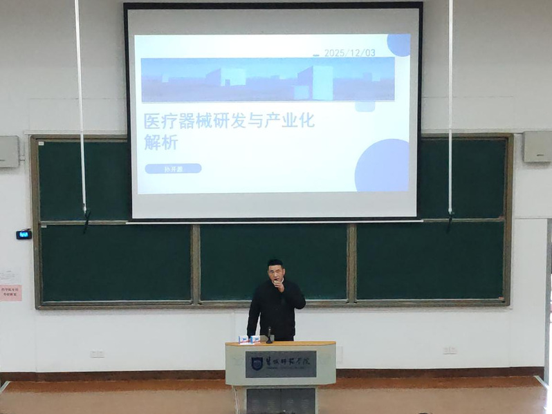 孙开源以“医疗器械研发与产业化解析”为题,从趋势洞察、研发流程与里程碑、产业化关键跳板、资本与商业模式、案例拆解与经验复盘、未来展望与行动清单等方面为在座师生诠释了技术创新与合规发展的路径,同时展望了AI智慧监管与数字孪生的行业未来。