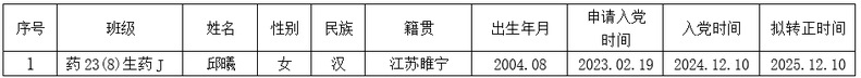 经党支部继续教育和考察,邱曦同志预备期满,党支部拟在近期召开党员大会讨论其转正问题。为进一步增强发展党员工作的透明度,严格发展党员工作程序,根据《中国共产党章程》和《中国共产党发展党员工作细则》,现将近期拟转正的预备党员情况予以公示。