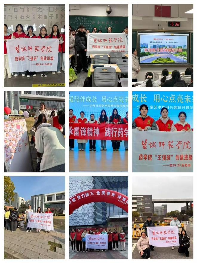 药学院坚持将社会实践与志愿服务作为践行初心的重要载体,推动“王强班”创建安班级以实际行动诠释责任与担当。生物制药25(6)班同学主动参与社区服务、卫生宣传、电诈科普、母校宣讲、游园保障等志愿活动;组织寒假返家乡宣传、走进亭湖新区实验小学爱心帮扶、结核病防治宣传、“健康校园,‘药’你同行”、亭湖区图书馆志愿服务等多项实践活动,在实践奉献中锤炼品格、增长才干,进一步增强了班级凝聚力与社会责任感。